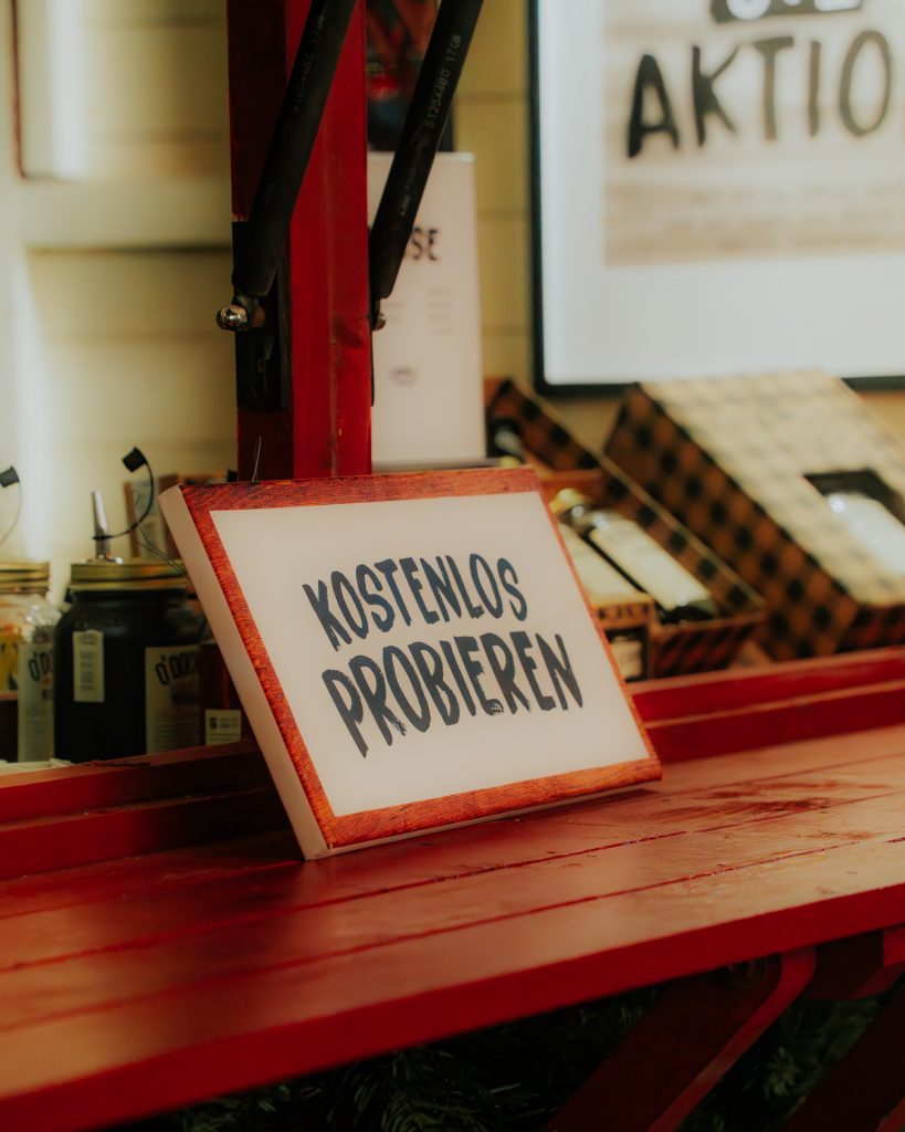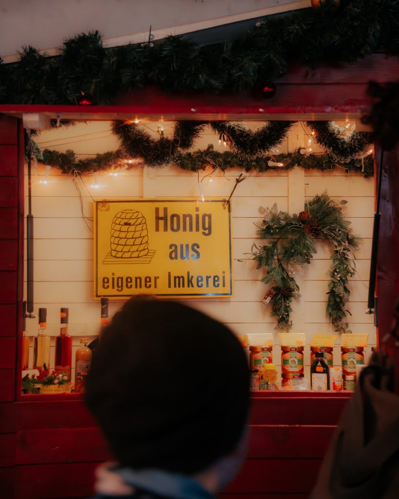 Ihr sucht noch nach einem Weihnachtsgeschenk für dieses Jahr? Bei O’Donnell könnt ihr kostenlos probieren und bekommt bei uns auf dem Markt sogar eine Rabattaktion. Oder doch lieber Honig, Kerzen und viele weitere Sachen aus eigener Imkerei? Kein Problem! Die findet ihr direkt gegenüber.